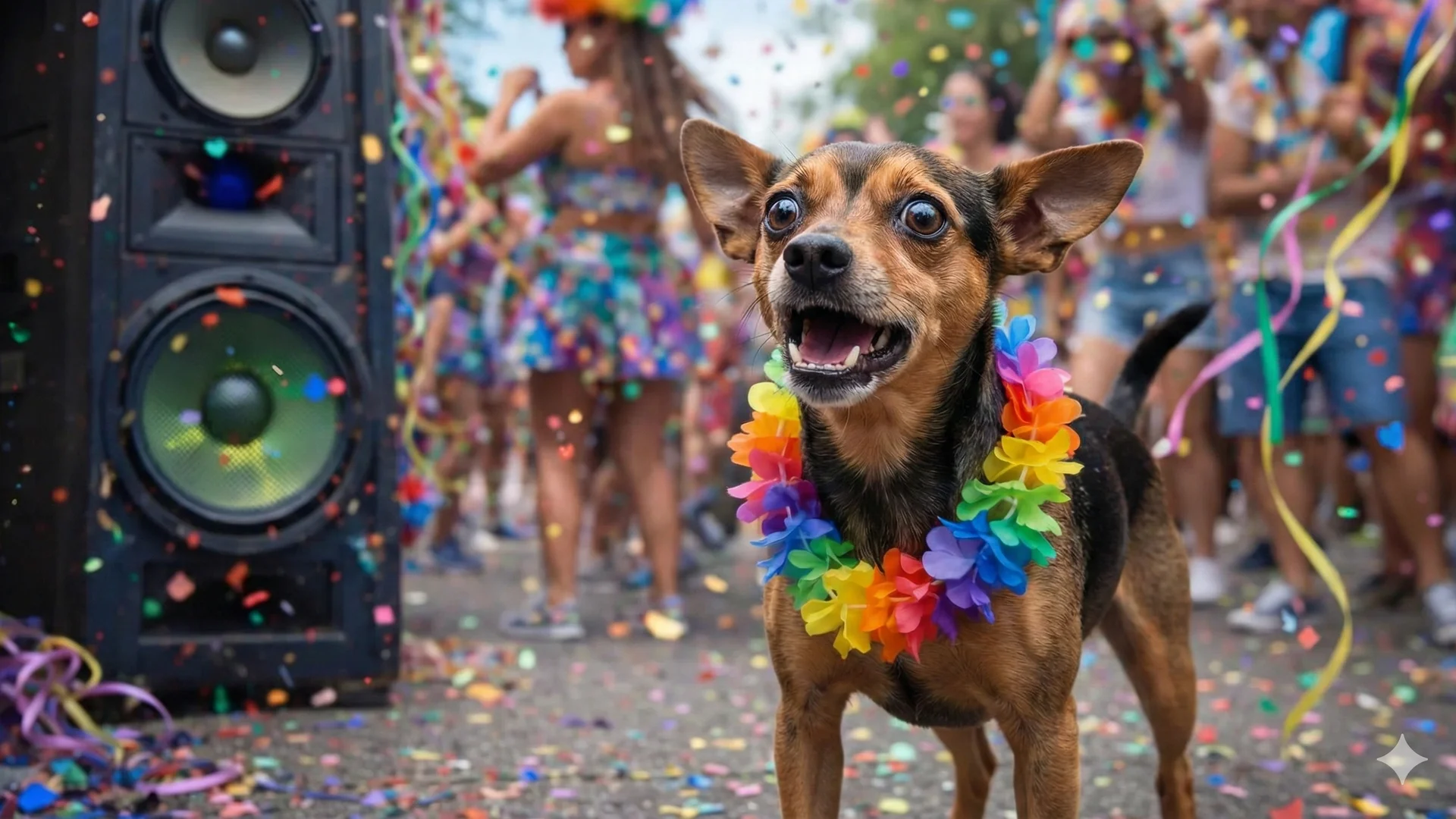 O problema não é apenas o volume. Diferente de um passeio comum, o Carnaval expõe o pet a sons com picos repentinos, vibração do ambiente e estímulos simultâneos, como pessoas se aproximando, fantasias, aglomeração e cheiros fortes. Para muitos animais, especialmente os mais sensíveis, esse conjunto pode desencadear medo e desorganização comportamental, mesmo que o pet pareça “calmo” no início.